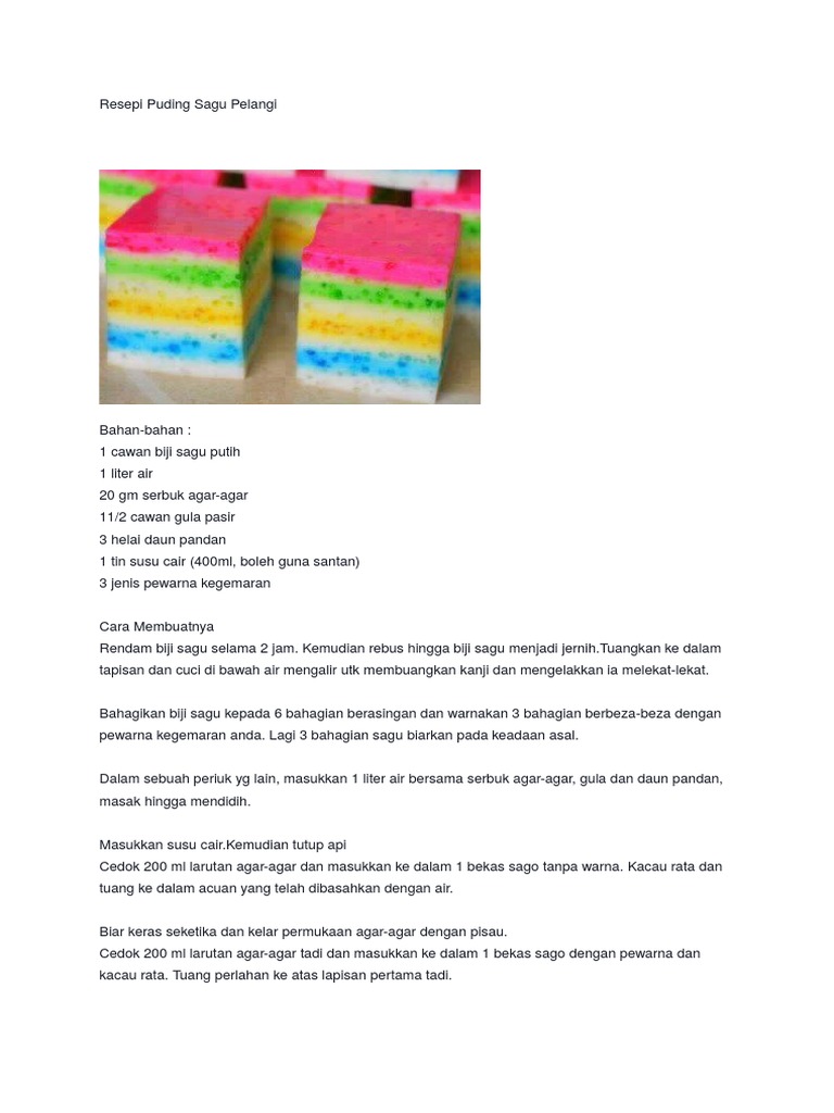 Resepi ini diambil dari pelbagai sumber dari internet dan digabungkan dalam satu aplikasi. Assalamualaikum dan salam sejahtera hari ini admin kongsikan video tutorial cara memasak puding sagu mudah abc. Puding sagu pelangi ini adalah hidangan pencuci mulut yang enak. Bahan puding sagu4 lentang sagu ( cetak)3 gelas santan2 sdm guladaun pandankenaricara membuat pudingsagu dimasak dengan santan dan sagu dimasak dengan santan dan daun pandan kalau sudah rata, masukan gula dan kenari, didihkan. Puding sagu gula melaka nur qaseh oleh: Untuk dessert malam hari resep puding sagu gunting ini juga cocok untuk disajikan. Lapisi dulu loyang dgn plastik. Ianya kerap dihidangkan semasa minum petang dan seiring dengan zaman moden, banyak resepi puding yang boleh kita dapati. Resep puding sagu kelapa muda spesial segar puding menjadi salah satu jenis cemilan yang segar manis yang sangat cocok disajikan saat terik matahari datang mengganggu. Resep membuat muffin coklat enak lembut. Jom layan resepi yang saya salin di bawah ini. Lihat juga resep puding mutiara enak lainnya. Tuang puding jagung di atas sagu mutiara.