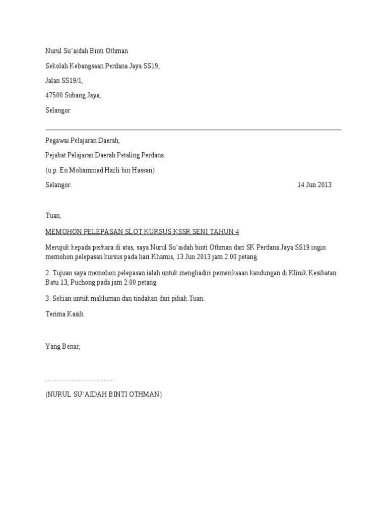 Surat Permohonan Cuti In English from imgv2-1-f.scribdassets.com Surat permohonan sendidi adalah surat. Surat permohonan adalah surat formal untuk meminta sesuatu pada pihak lain. Cuti dapat diambil karena beberapa alasan seperti cuti karena sakit, cuti melahirkan atau cuti untuk liburan. 30 contoh surat pemberitahuan secara resmi paling lengkap. Contoh surat permohonan kerjasama, contoh surat permohonan dana, surat permohonan maaf, format surat permohonan, surat permohonan izin, garis panduan latihan industri pelajar via www.slideshare.net. Namun, ada beberapa fungsi surat yang tidak hanya digunakan sebagai alat penyampai pesan untuk berinteraksi dalam hubungan informal saja. Panduan permohonan cuti cuti.dari skrin pengurusan cuti, klik permohonan cuti pengurusan cuti langkah 3 klik permohonan cuti rajah 3: Adapun surat yang resmi biasanya akan ditujukan.